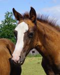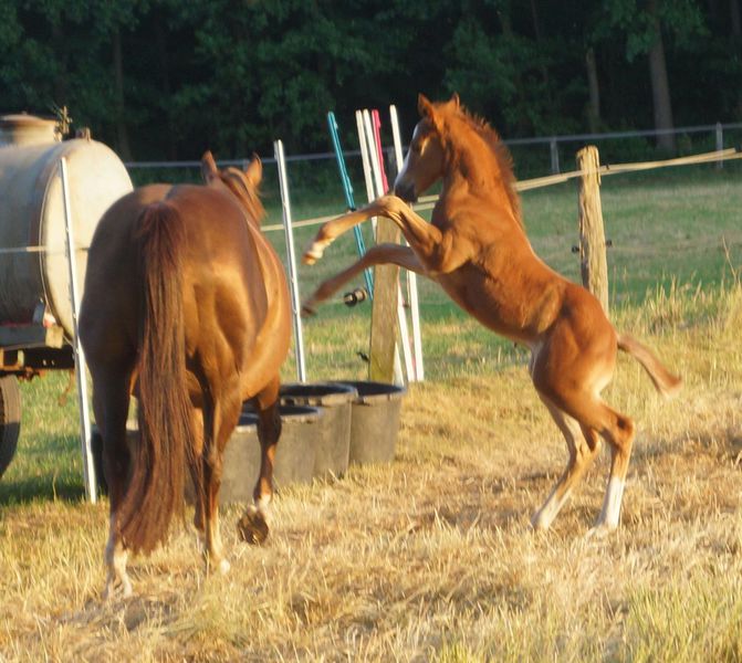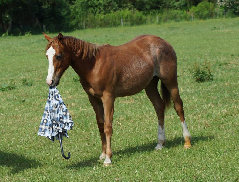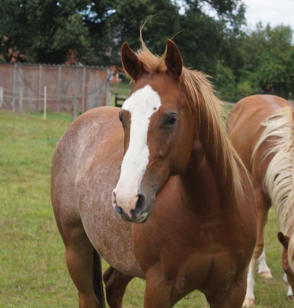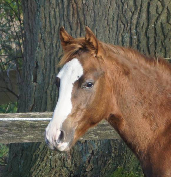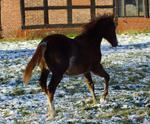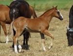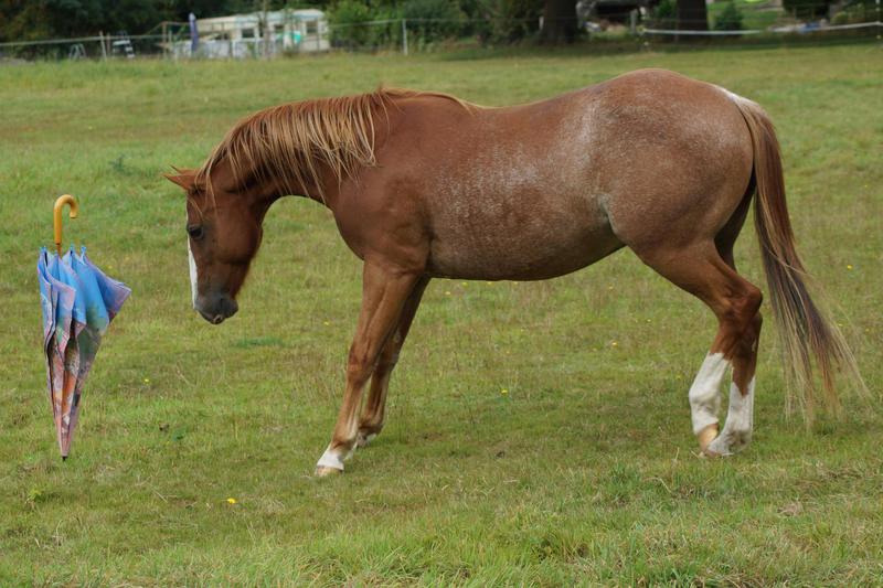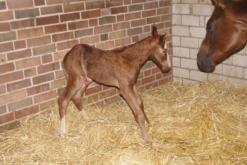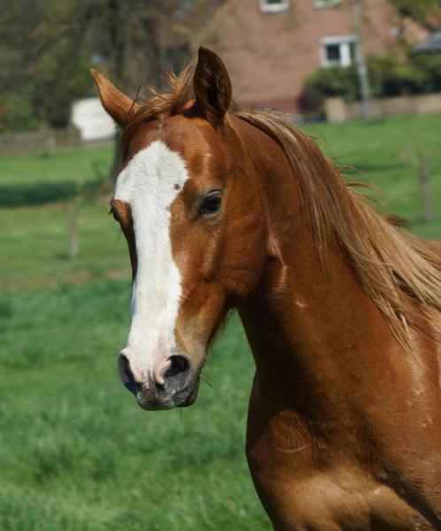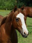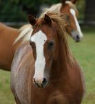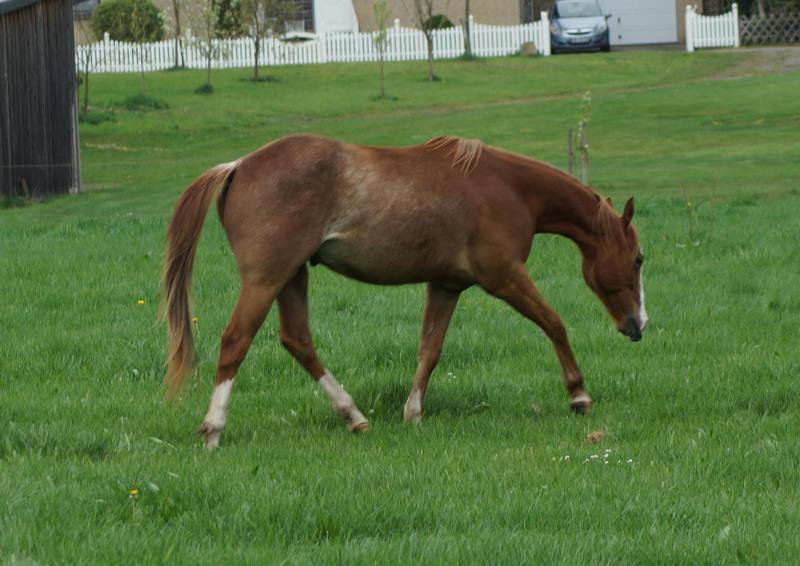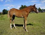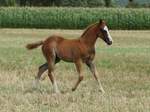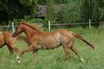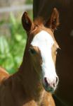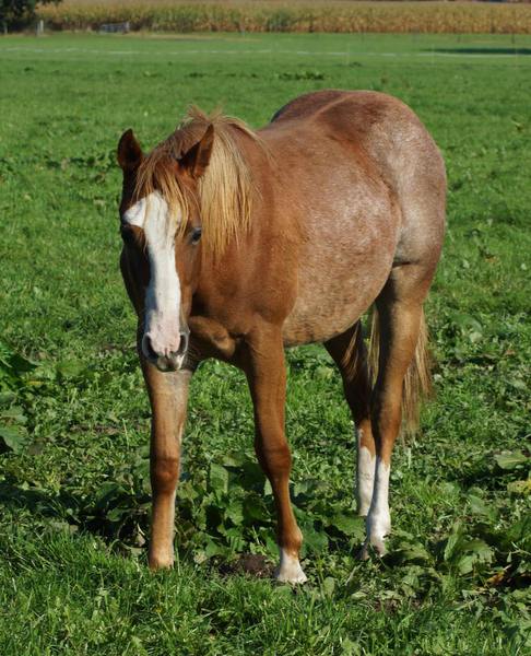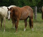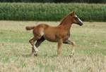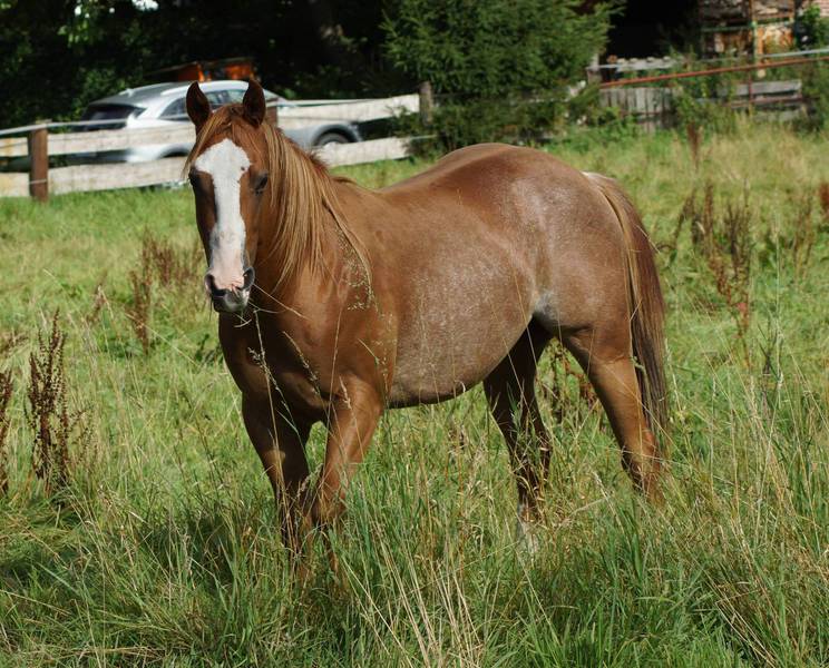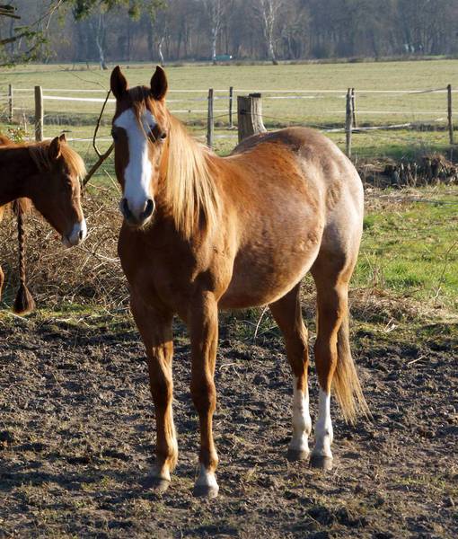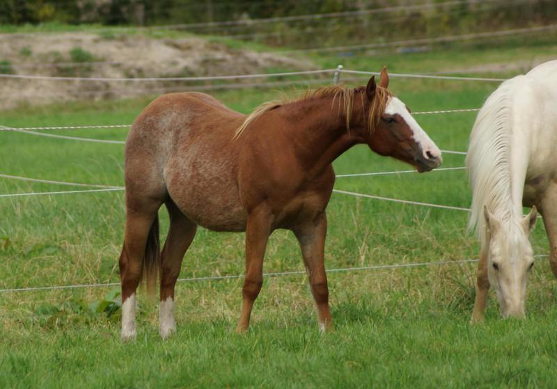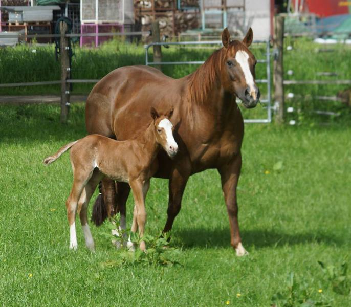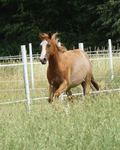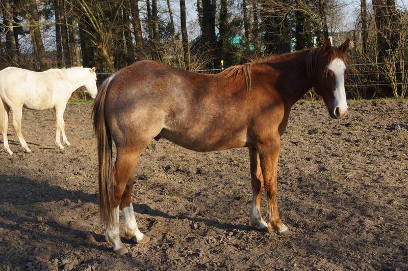 Er ist ein kompakter korrekter Hengst in sorrel mit rabicano. Katzenhafte Bewegungen lassen eine tolle Karriere
