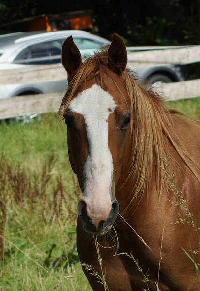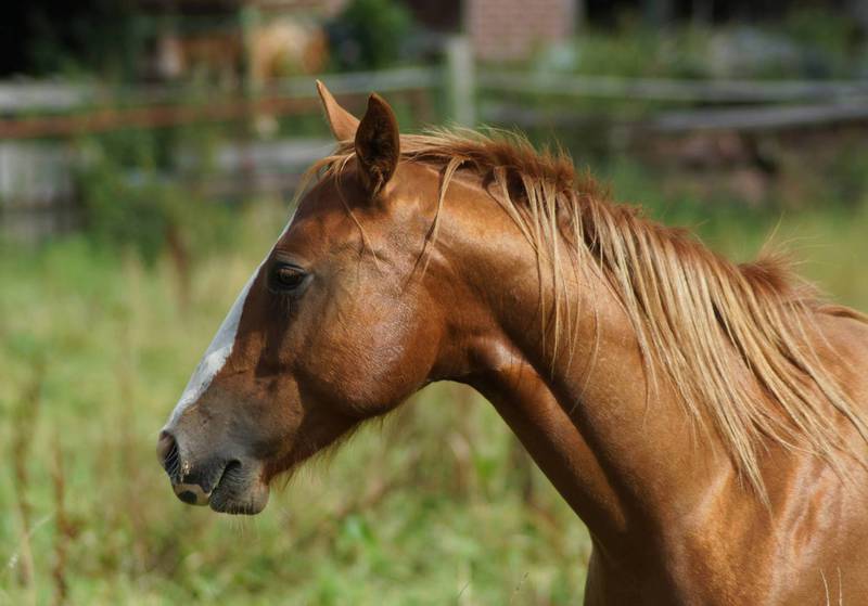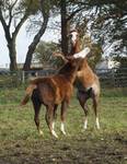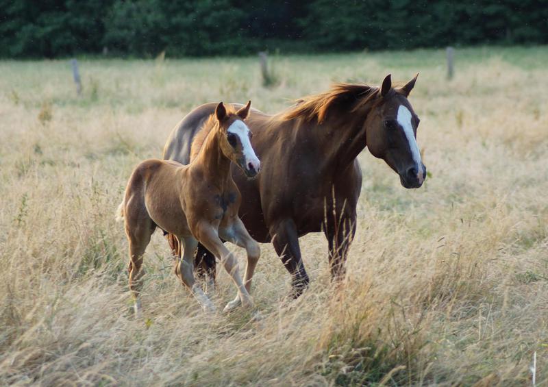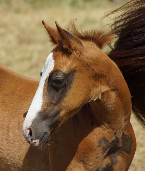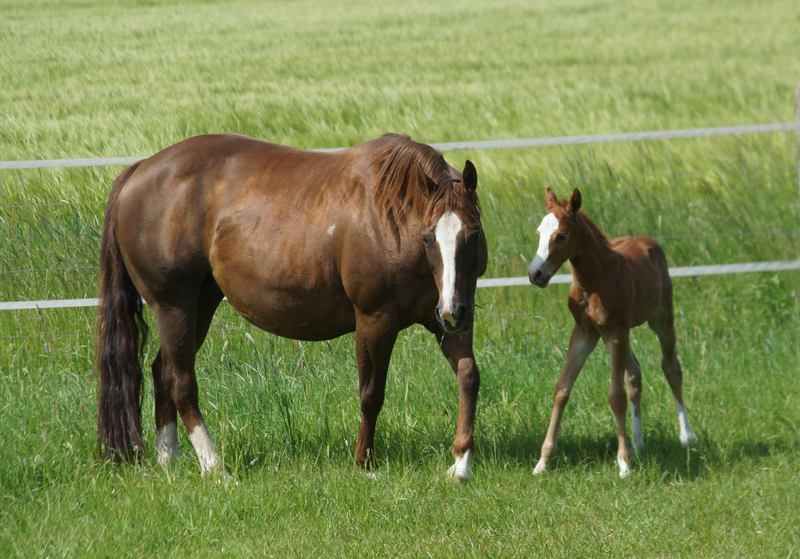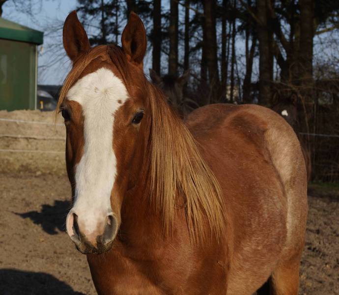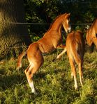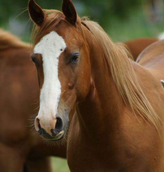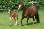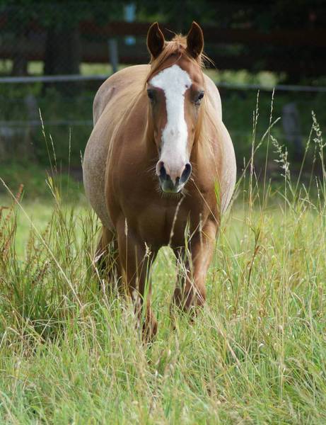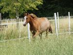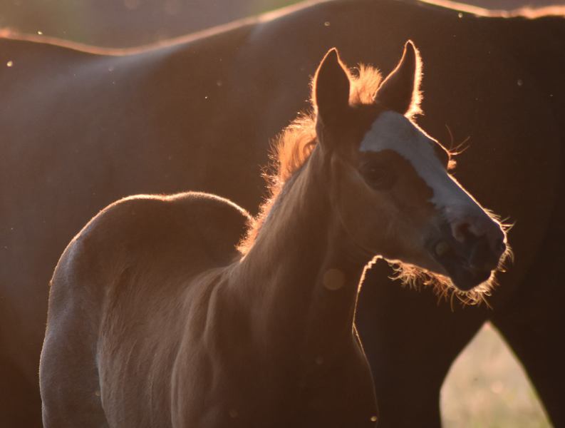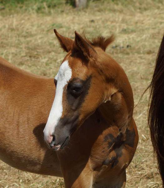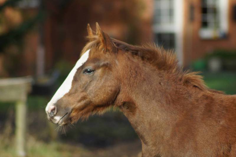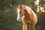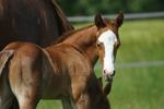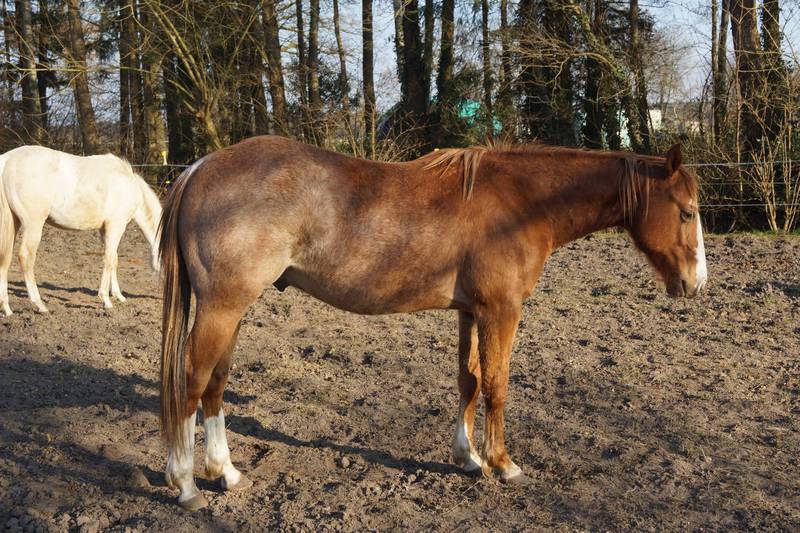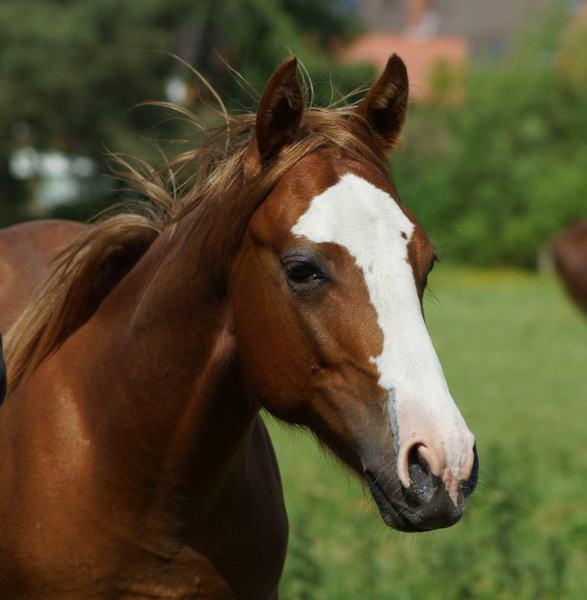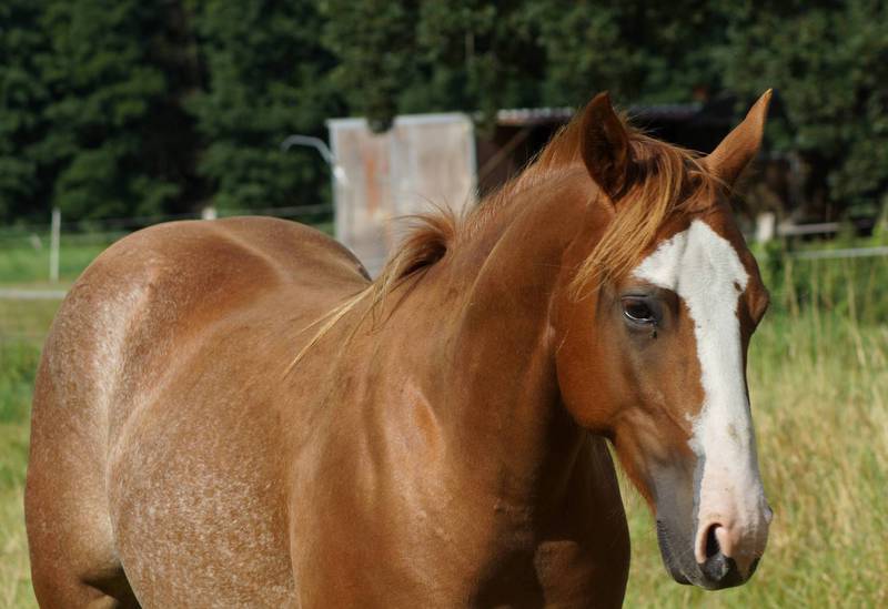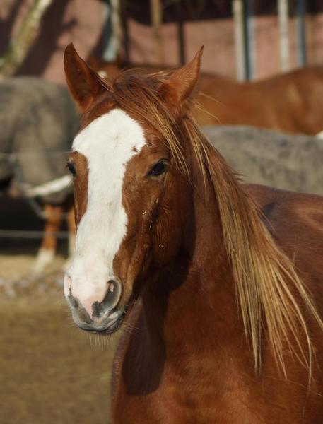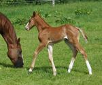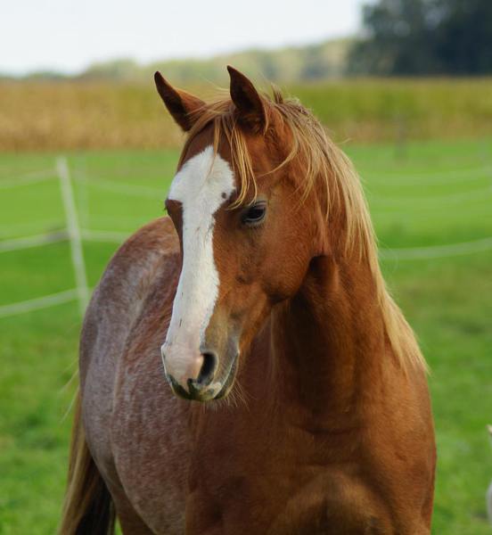 Er ist ein kompakter korrekter Hengst in sorrel mit rabicano. Katzenhafte Bewegungen lassen eine tolle Karriere