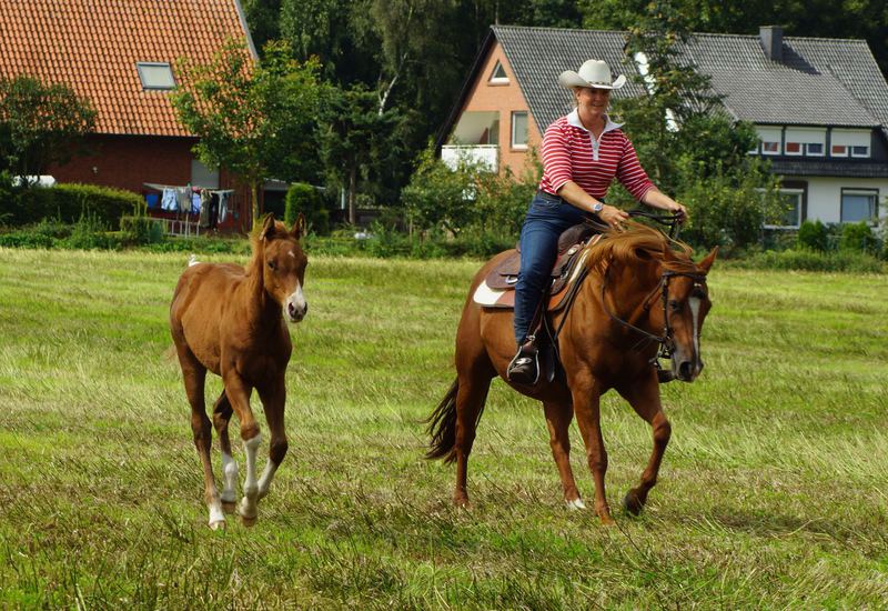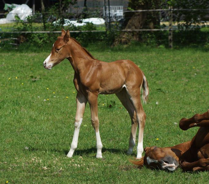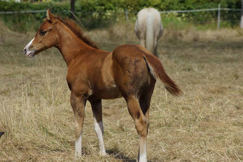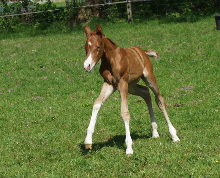 Am 01.05.2024 brachte unsere Hazel ein wunderschönes sehr kräftiges Hengstfohlen mit langen Beinen mit 4 x weiß von Inferno Sixty Six zur Welt. Der kleine Jimmy ist super zutraulich und verschmust. Er hat eine korrektes Gebäude und zeigt früh schon sehr athletische Bewegungen wie stops und turns.