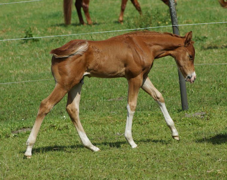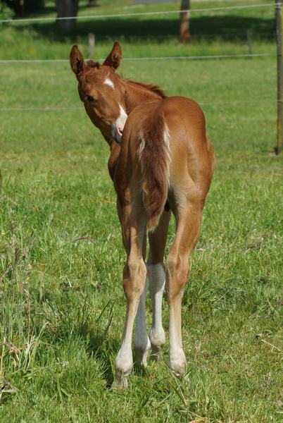 Welcome Jimmy, he is a strong well build colt with four white socks.