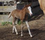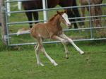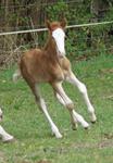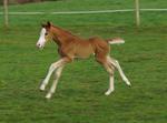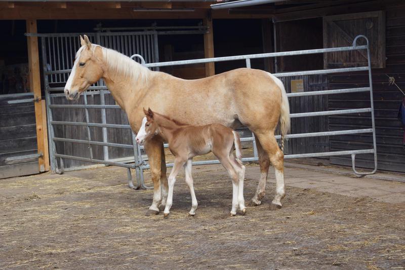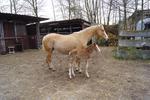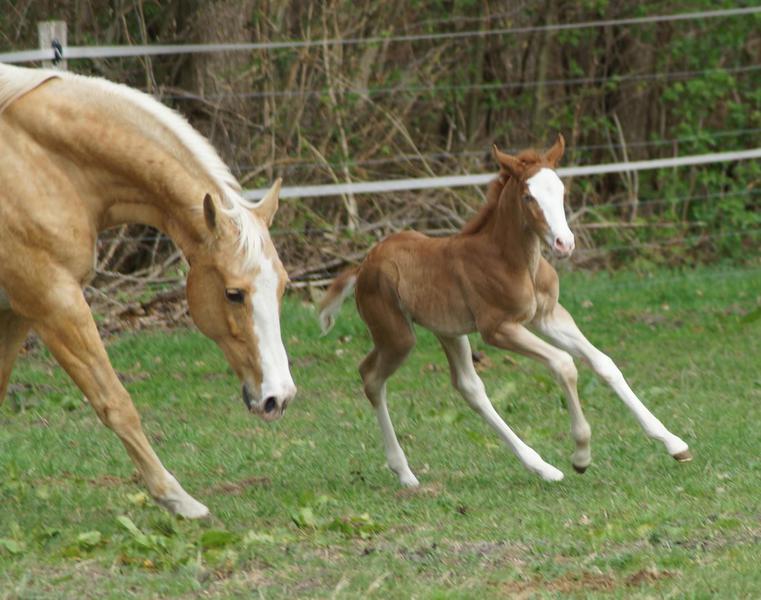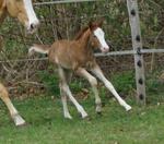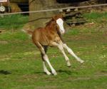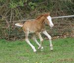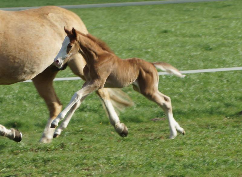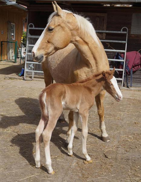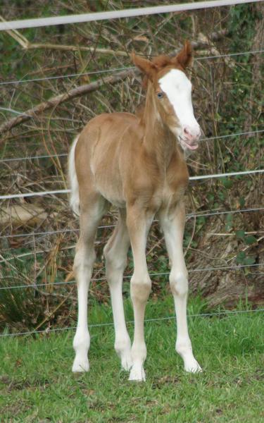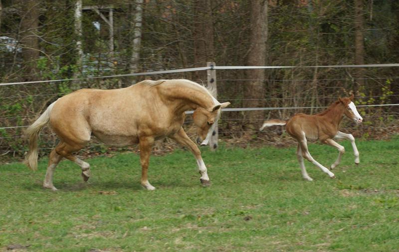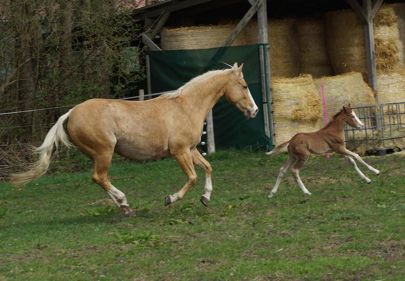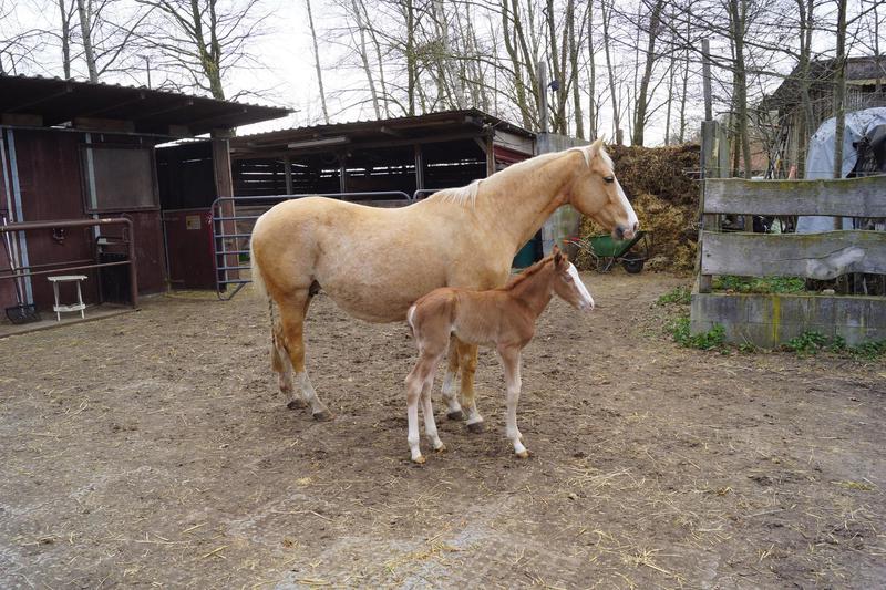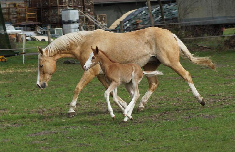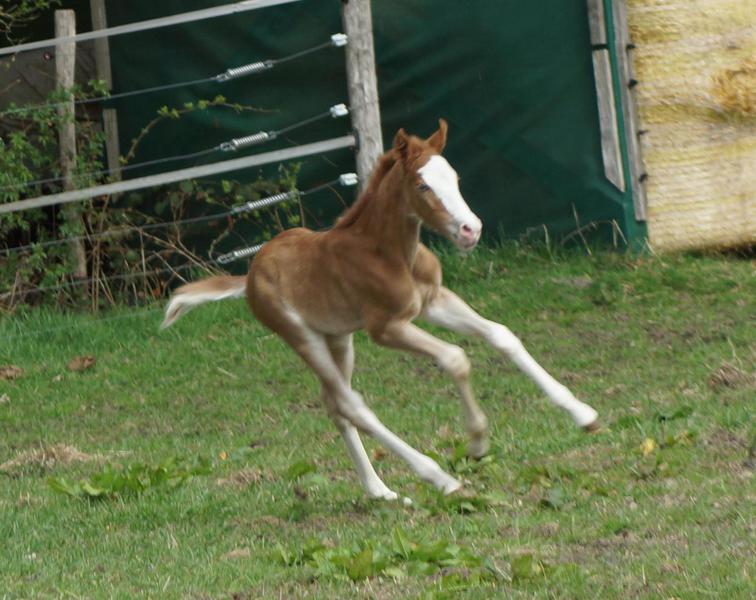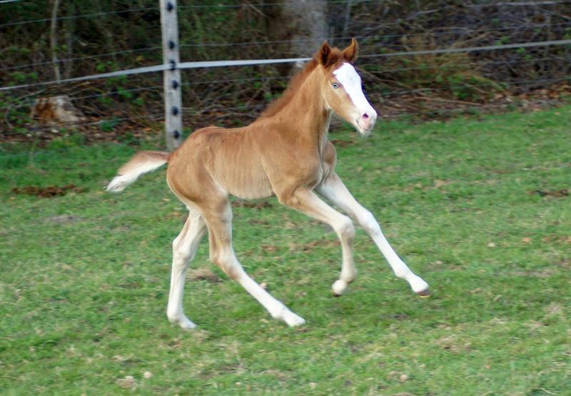 Sie ist ein langbeiniges sorrel Stütchen mit viel Chrome und einem braunen und einem blauen Auge. Hailey hat einen korrekten Körperbau und kräftiges Fundament.