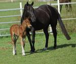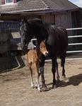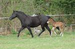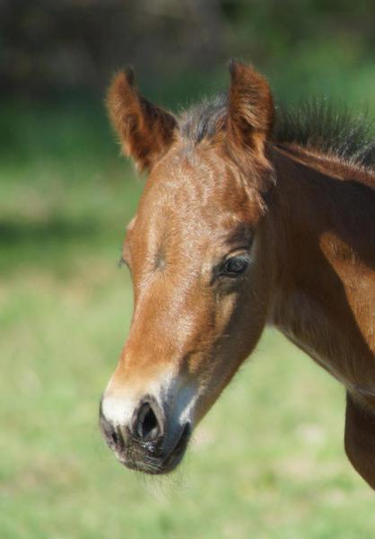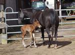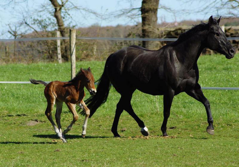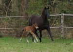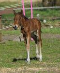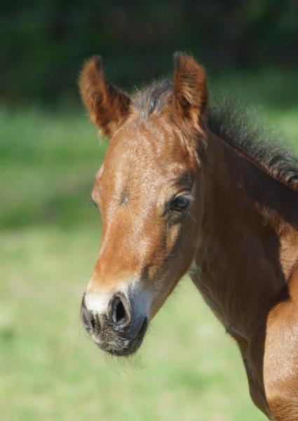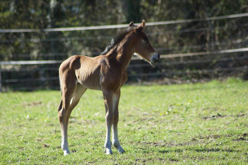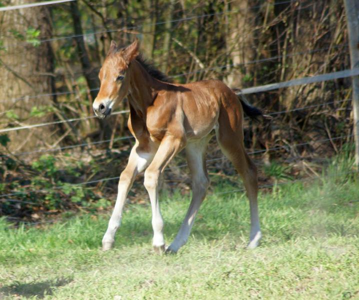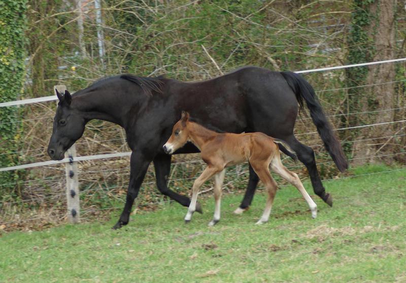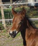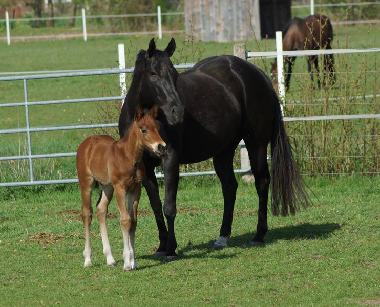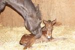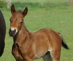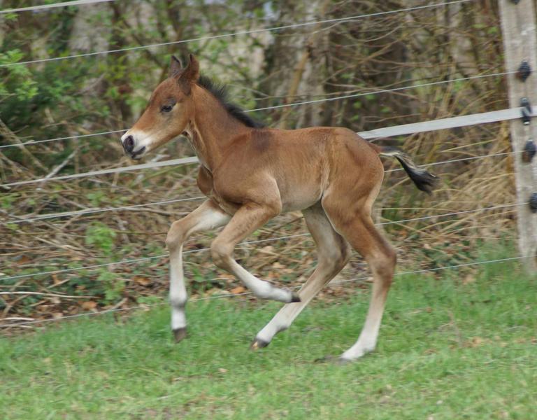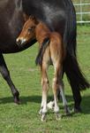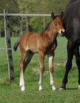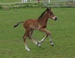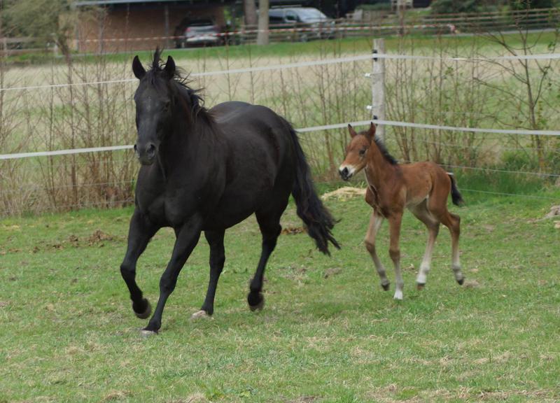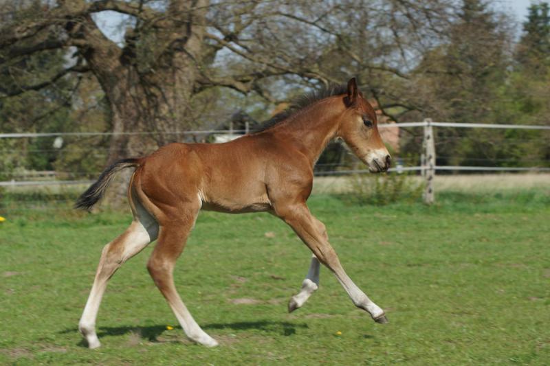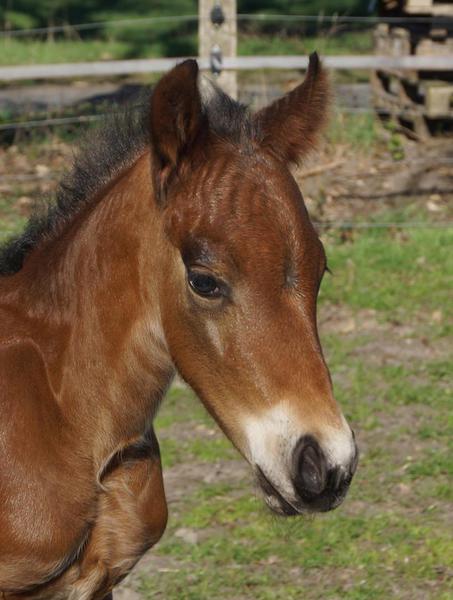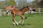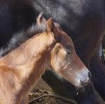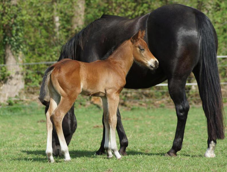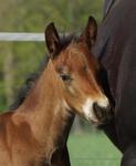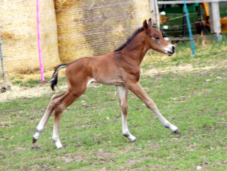 Der kleine braune Mann war schnell auf den Beinen und hat auch zügig die Milchbar erobert. Er ist ein kompakter Hengst mit kräftigem Fundament und geraden Beinen.