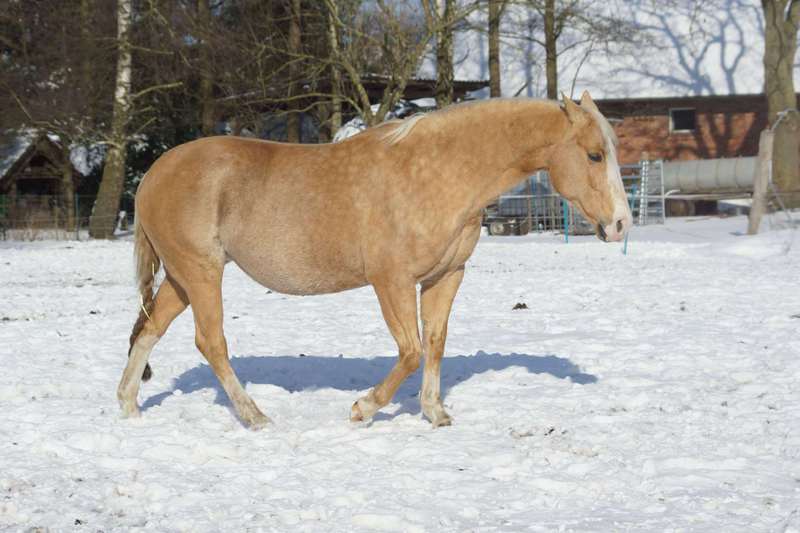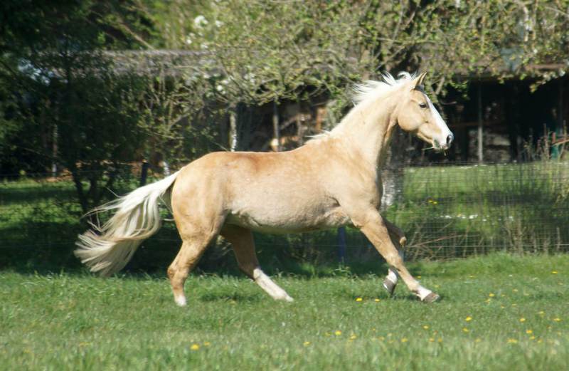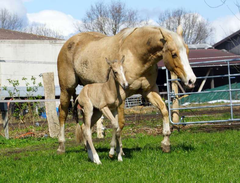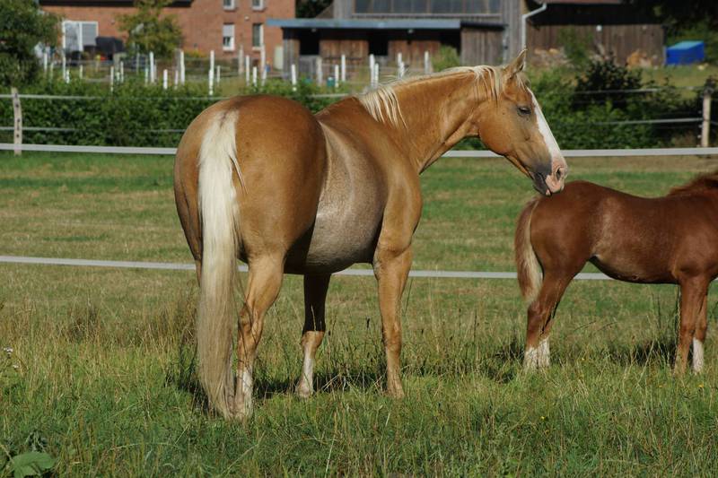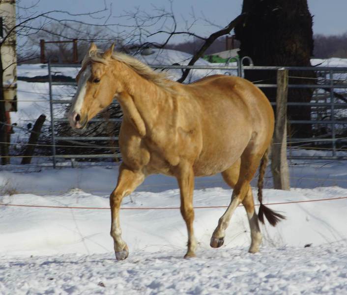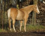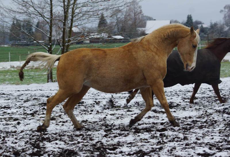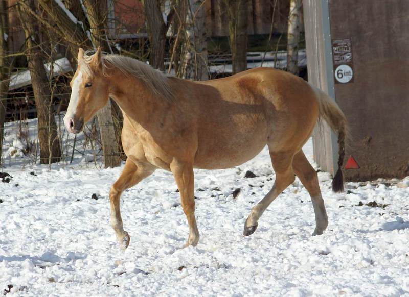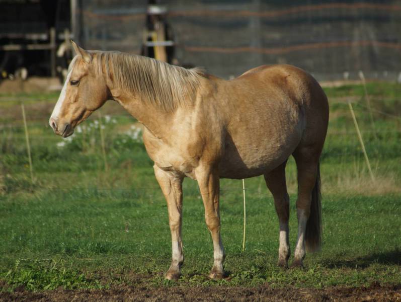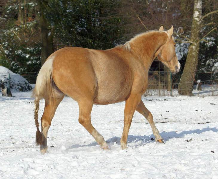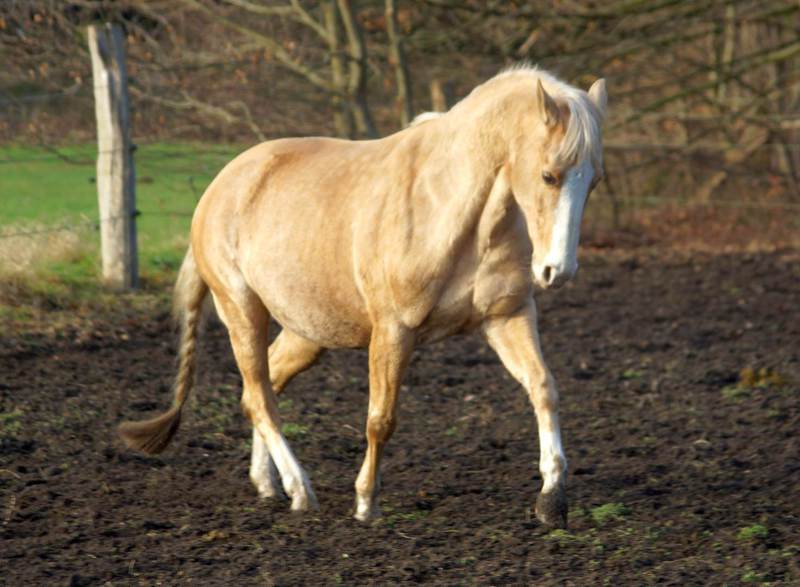 Blondi is well build with big bones and in Palomino rabicano.