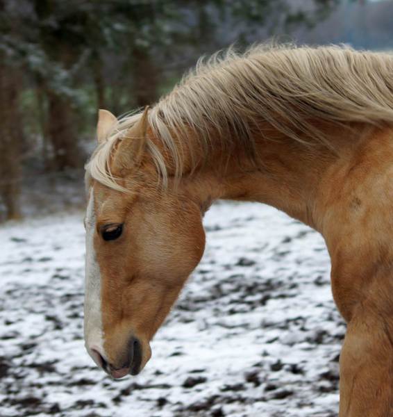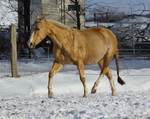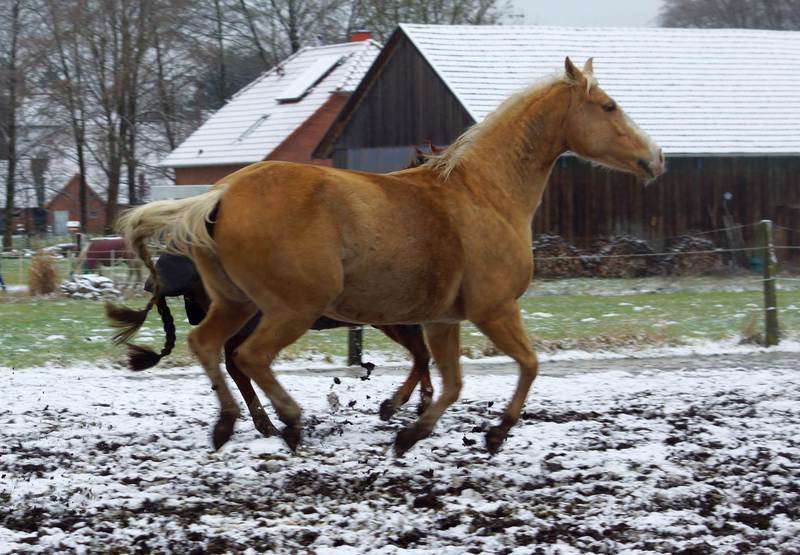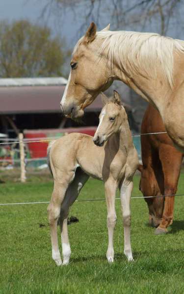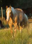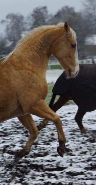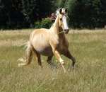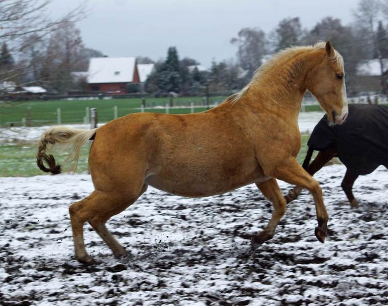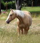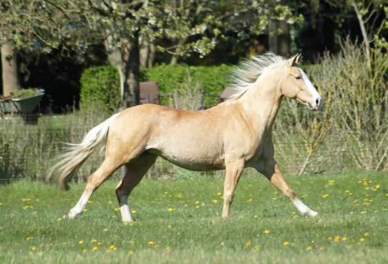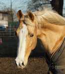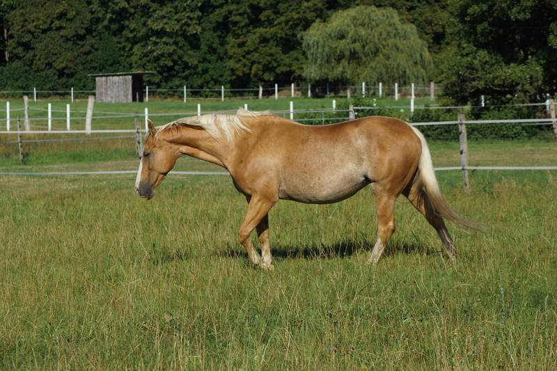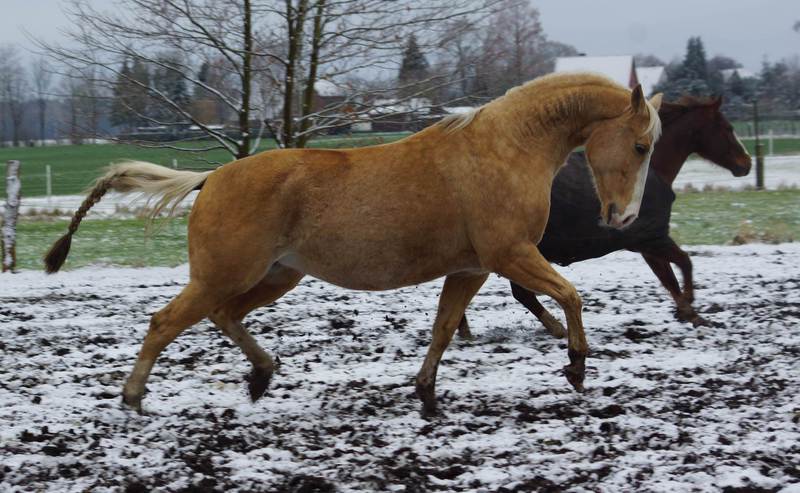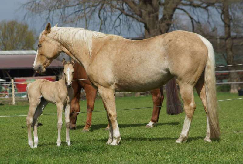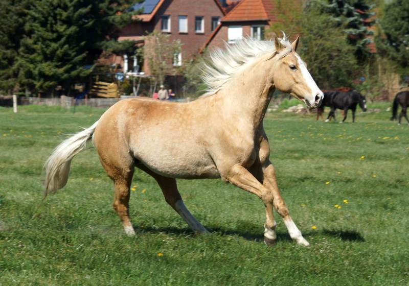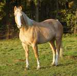 Blondi is well build with big bones and in Palomino rabicano.
