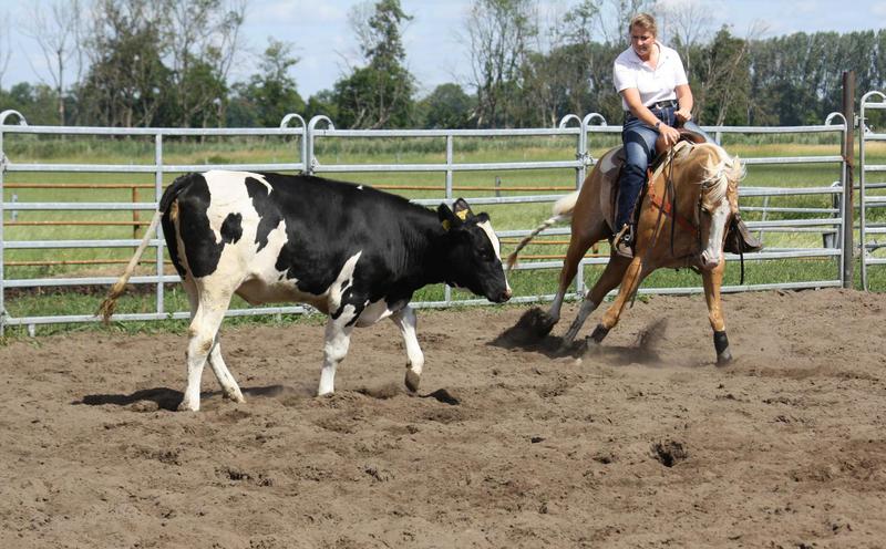 Und sie zeigt soviel Talent für die Rinderarbeit.