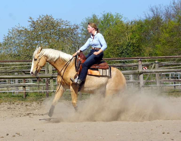 Sie hat kräftiges Fundament und ist ready to show in Reining ausgebildet.