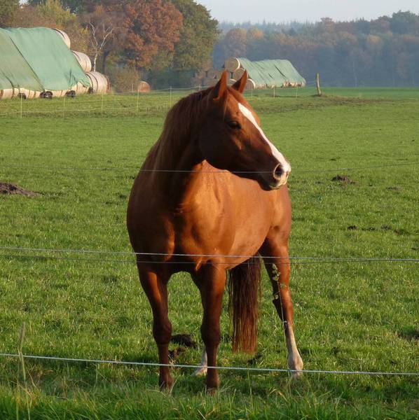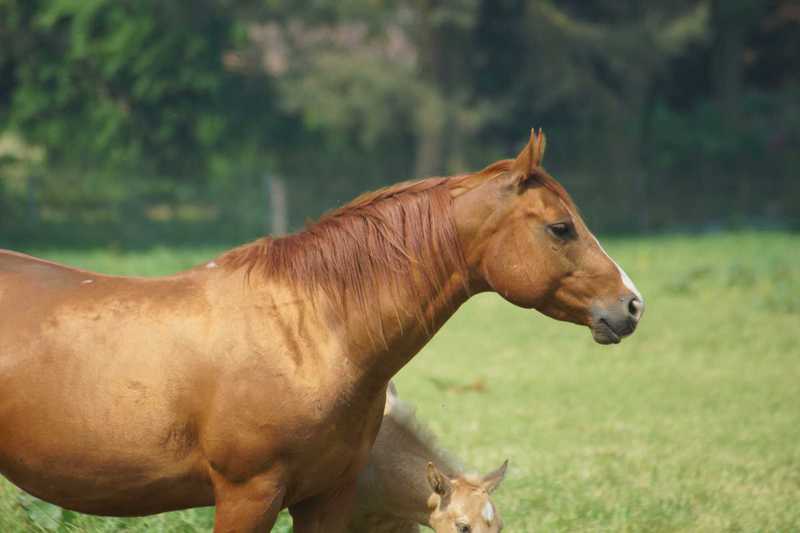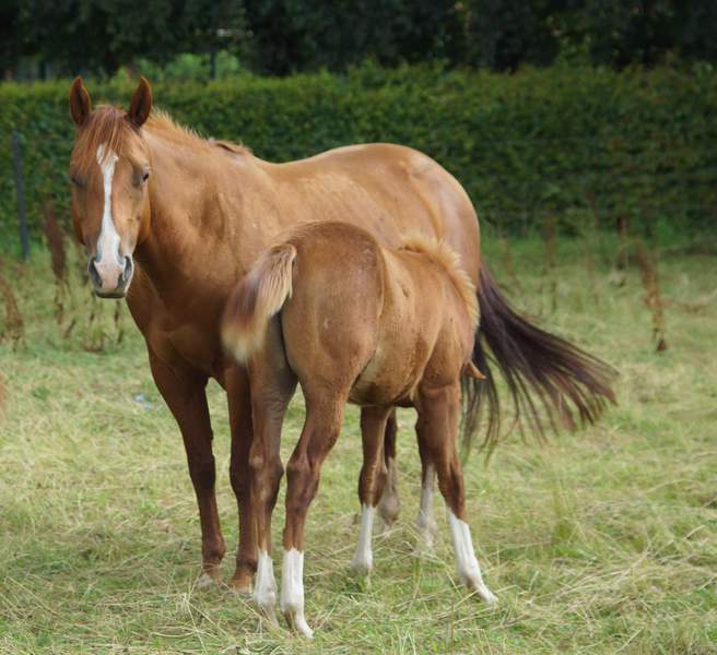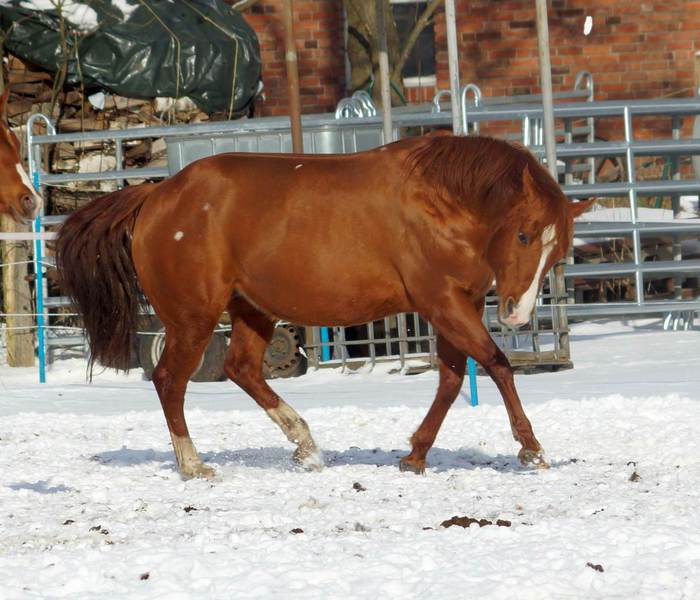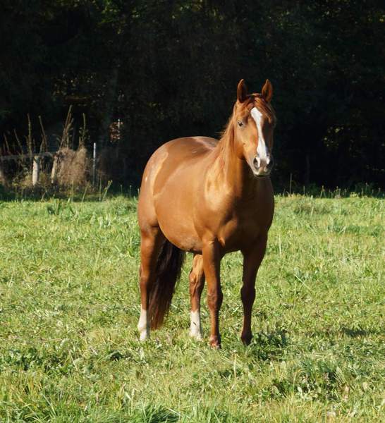 AJ Freckles Sugar T ist eine tolle Reining- / Allroundstute, die unsere Zuchtstutenherde verstärkt. Sugar ist die Halbschwester von unserem Willi (väterlicherseits) und eine 1,43 m kompakte sorrelfarbene Stute mit wunderhübschem Köpfchen.