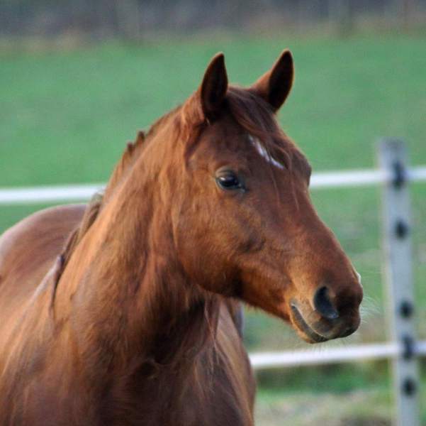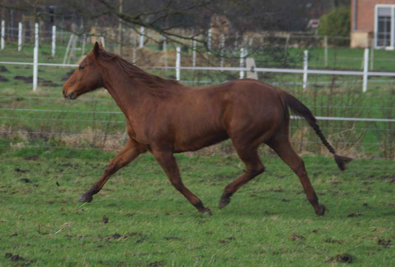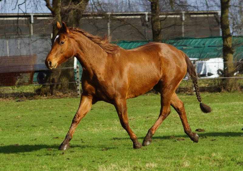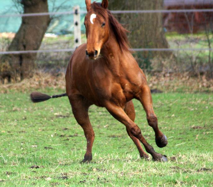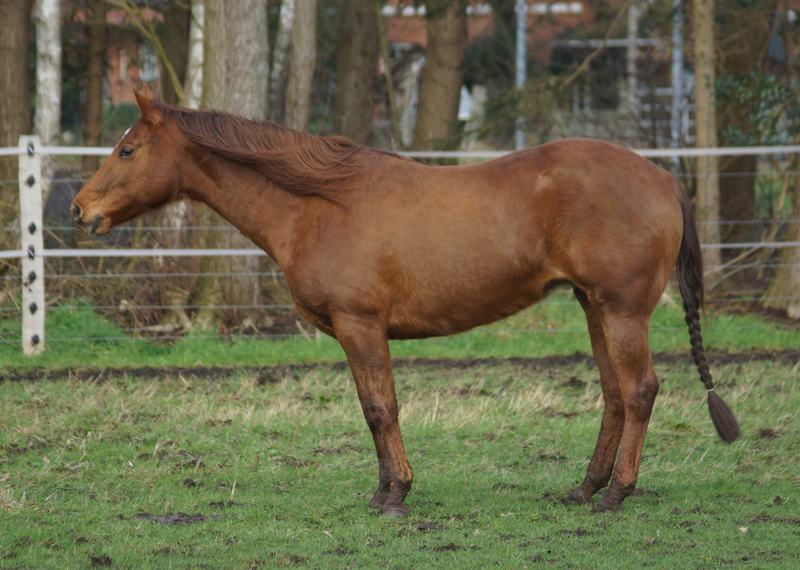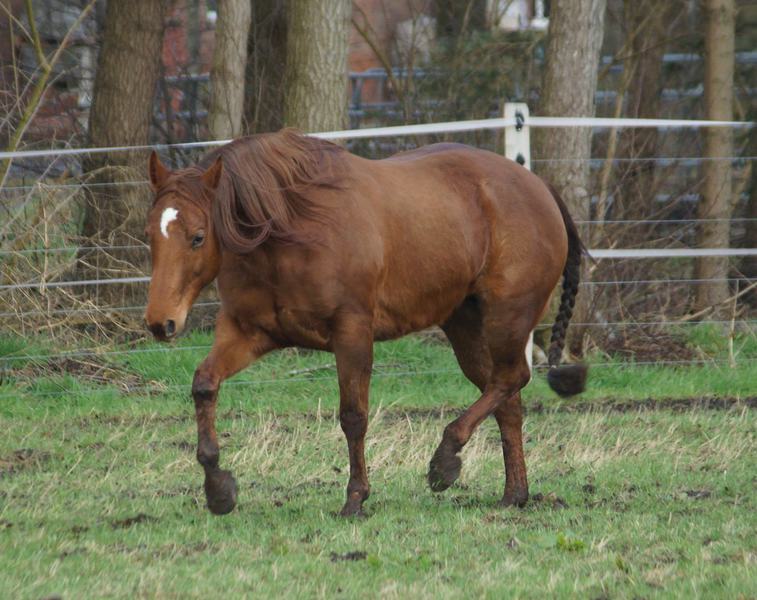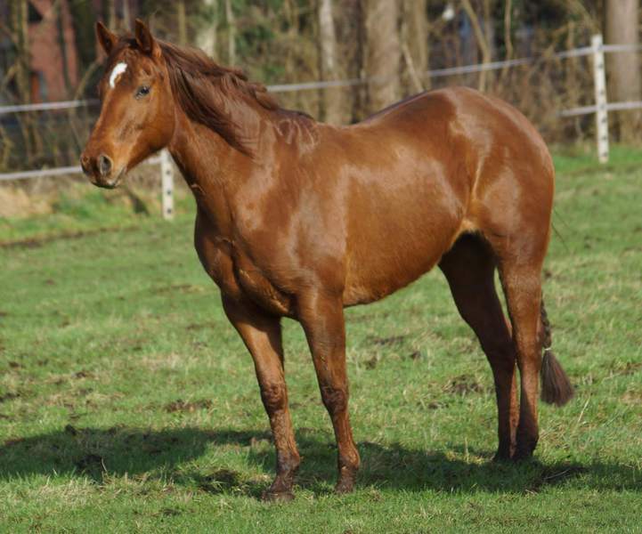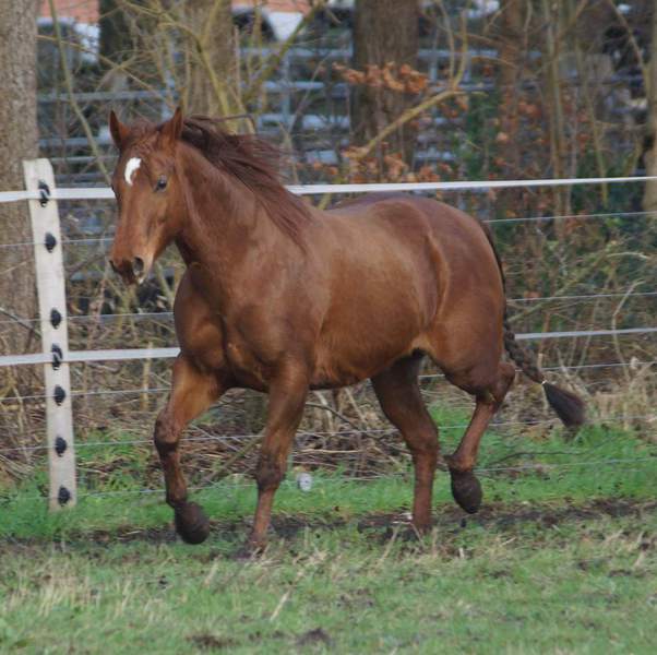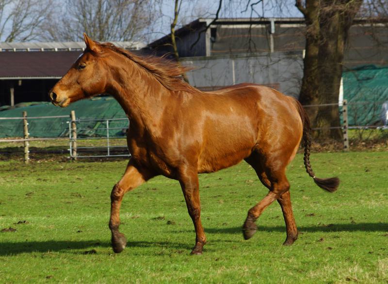 Scarlet ist eine wunderschöne sorrelfarbene Stute die sich mit viel Eleganz sehr athletisch bewegt .
