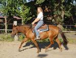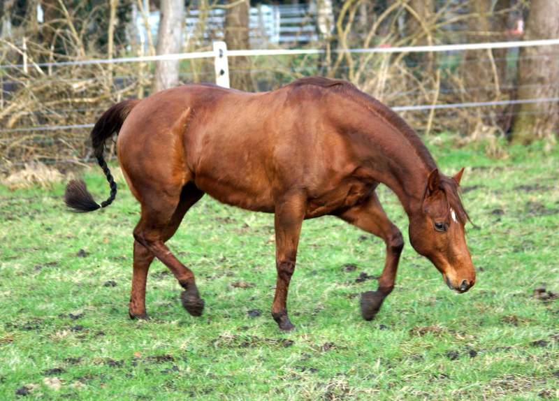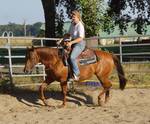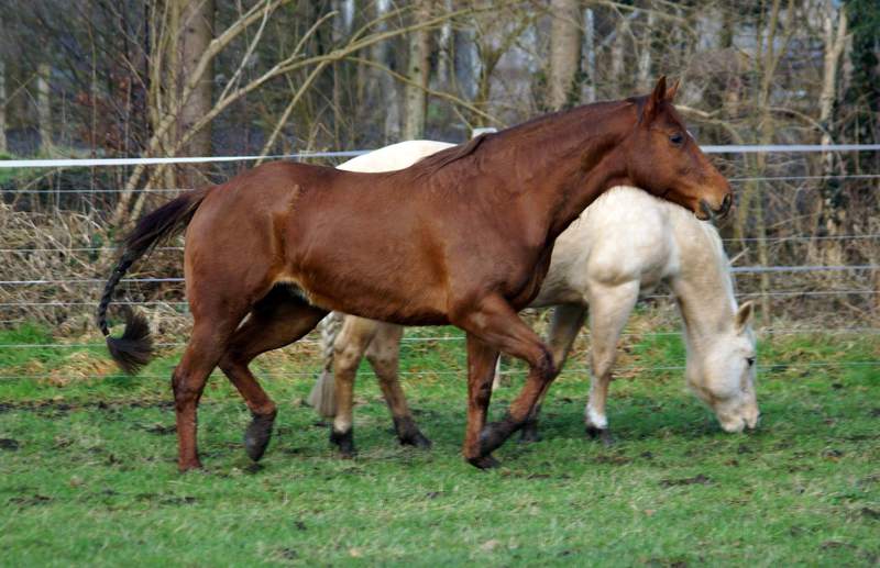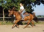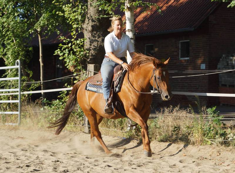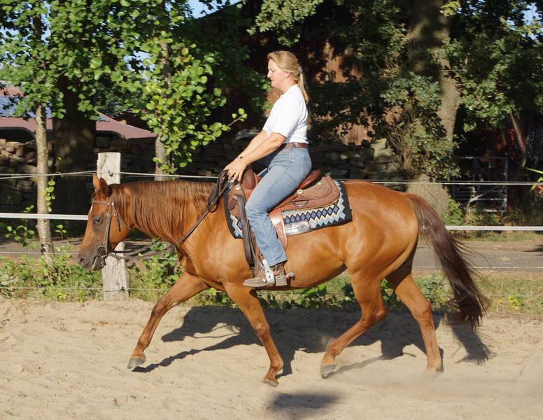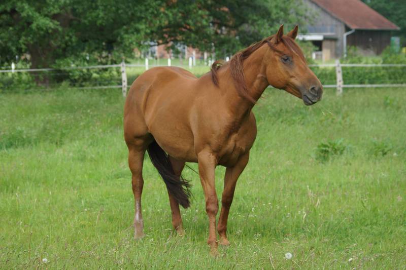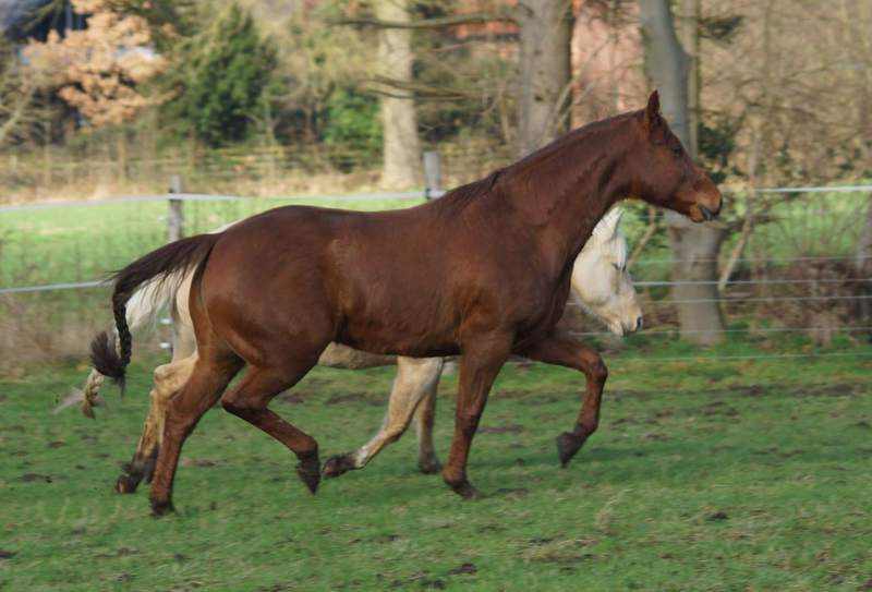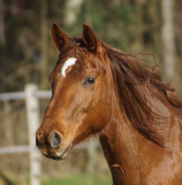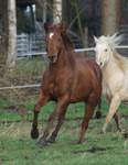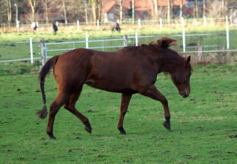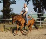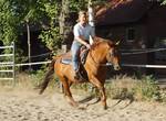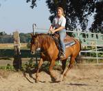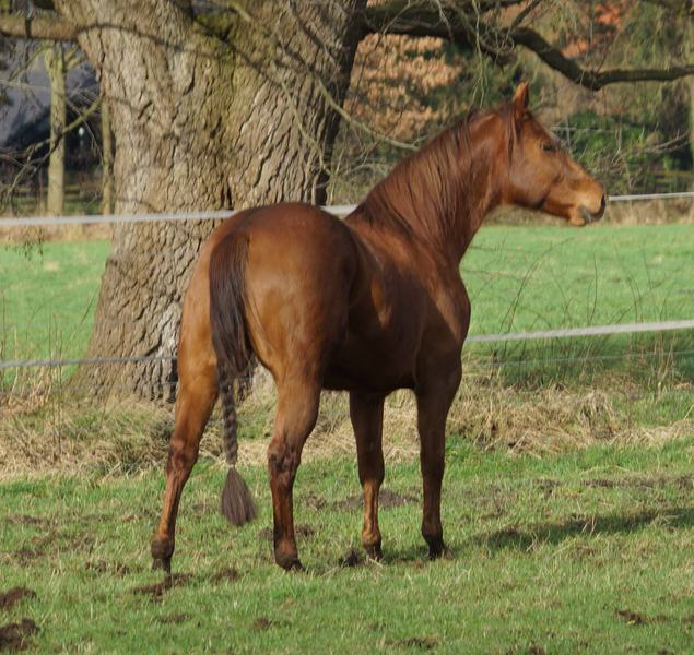 Scarlet ist eine wunderschöne sorrelfarbene Stute die sich mit viel Eleganz sehr athletisch bewegt .
